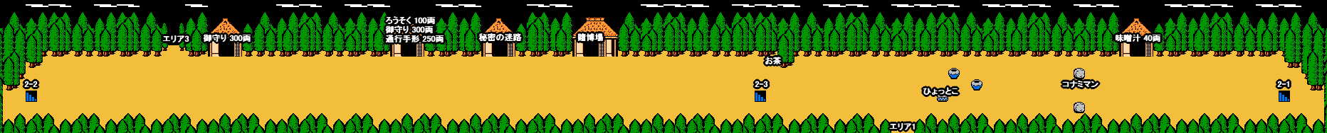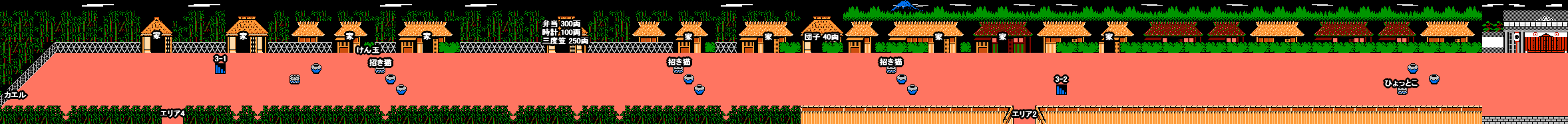 | 【カゴ屋】 七ベェ・八ベェ | 500点 | 15両 | しない | 接触するとステージのスタート位置まで連れて行かれ さらに料金として30両を取られてしまう。 アイテム「御守り」で回避可能 |