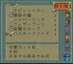 SFC版限定の機能で、持ち物画面で武器にカーソルを合わせて