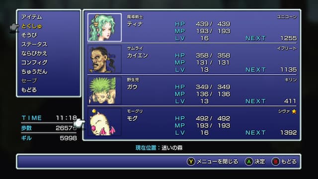 幻獣名の横に星マークが付いているものは、全ての魔法を修得している状況です。